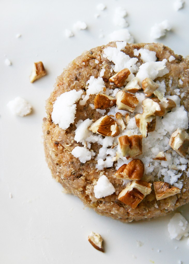 I’ve been eyeing the quinoa bakes from the fabulous Leanne Vogel over at Healthful Pursuit for the past several weeks and I’ve made two already (banana bread and apple walnut)! If you aren’t familiar with Leanne, go check out her site and her quinoa bakes- she has wonderful gluten free and dairy free recipes I know you will love! The flavor combinations for these bakes are endless so if bananas don’t make you happy then feel free to change up the ingredients. This recipe is a riff on banana bread using hearty quinoa flakes and coconut. If you aren’t much of a quinoa fan, feel free to use gluten free oats instead of the quinoa but reduce the cooking time* (see notes below).