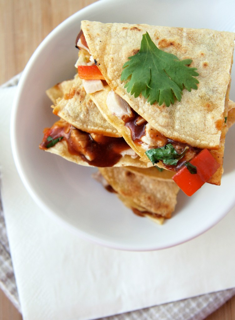Quick comfort food -- that's what I have been craving these days. Plus, these BBQ chicken quesadillas happen to be one of Chris's all-time favorites too (turkey tacos + the fixin's is probably his ultimate homemade meal) which makes us both happy 🙂