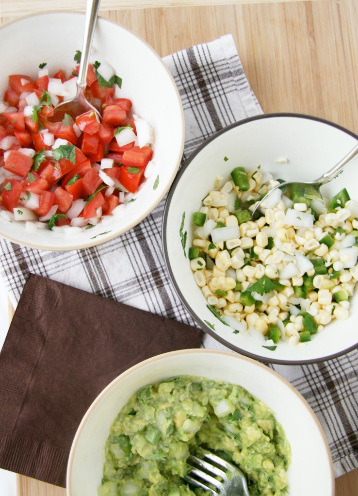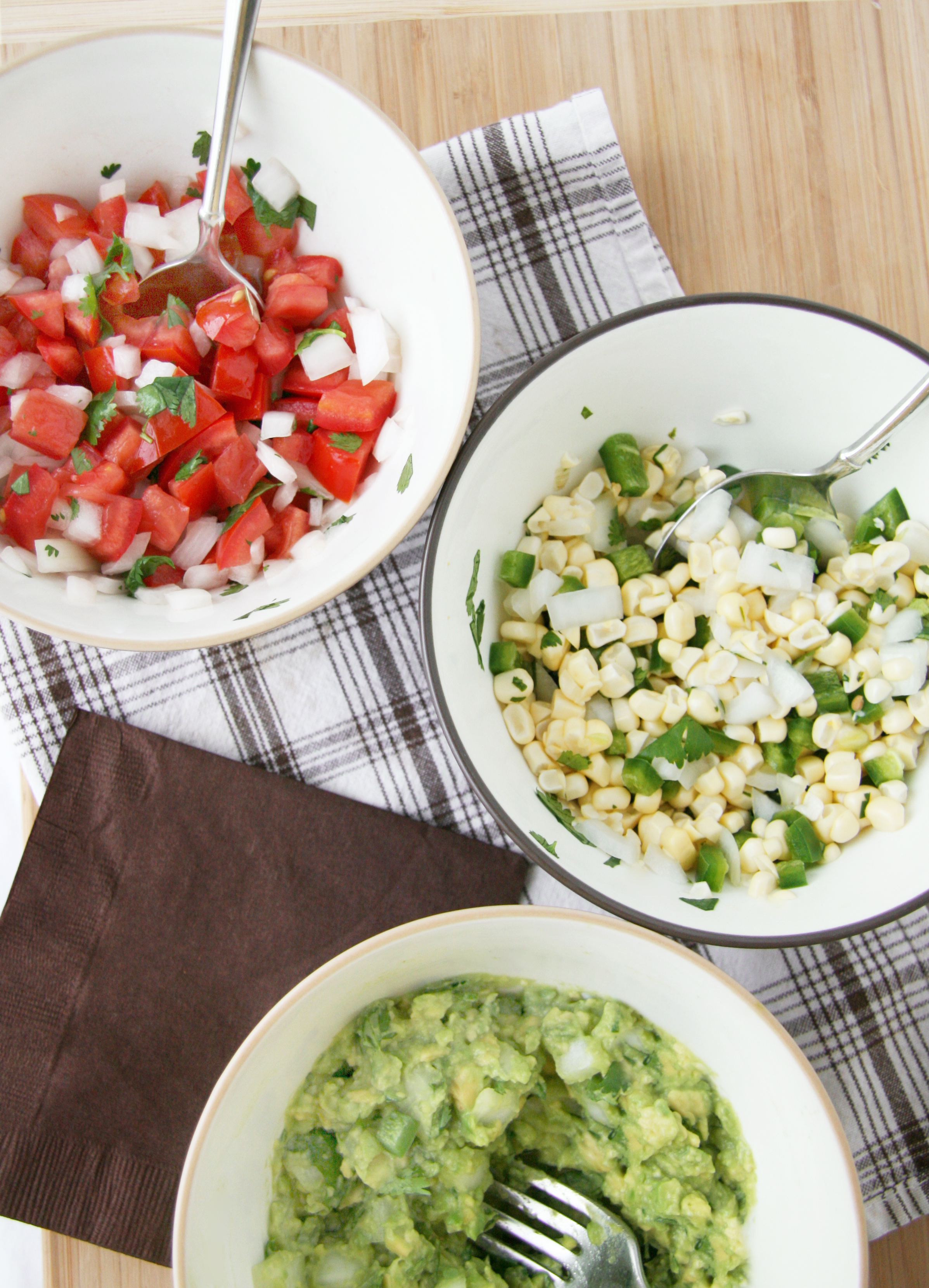 Toppings are all about preference. I’m a fan of medium-heat corn salsa, mild pico de gallo, creamy guacamole, and a sprinkle of shredded cheese. My recipes are below, but feel free to swap in your favorites. If time’s tight, a taco seasoning packet, pre-shredded cheese, or store-bought guac and salsas can make this a quick, satisfying weeknight meal. Keep it simple and enjoy!