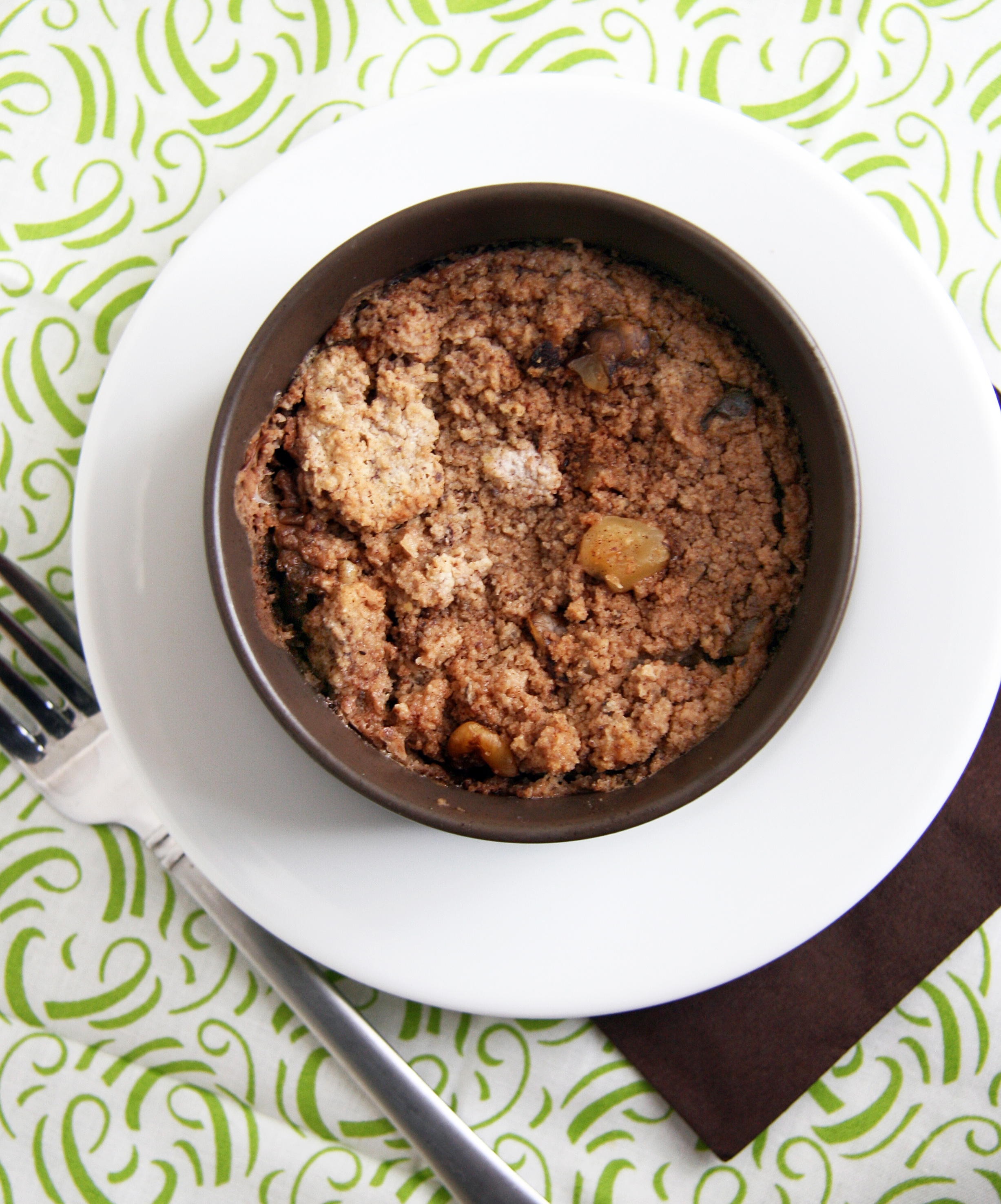 - Preheat oven to 350F and grease a small ramekin with coconut oil or Earth Balance.