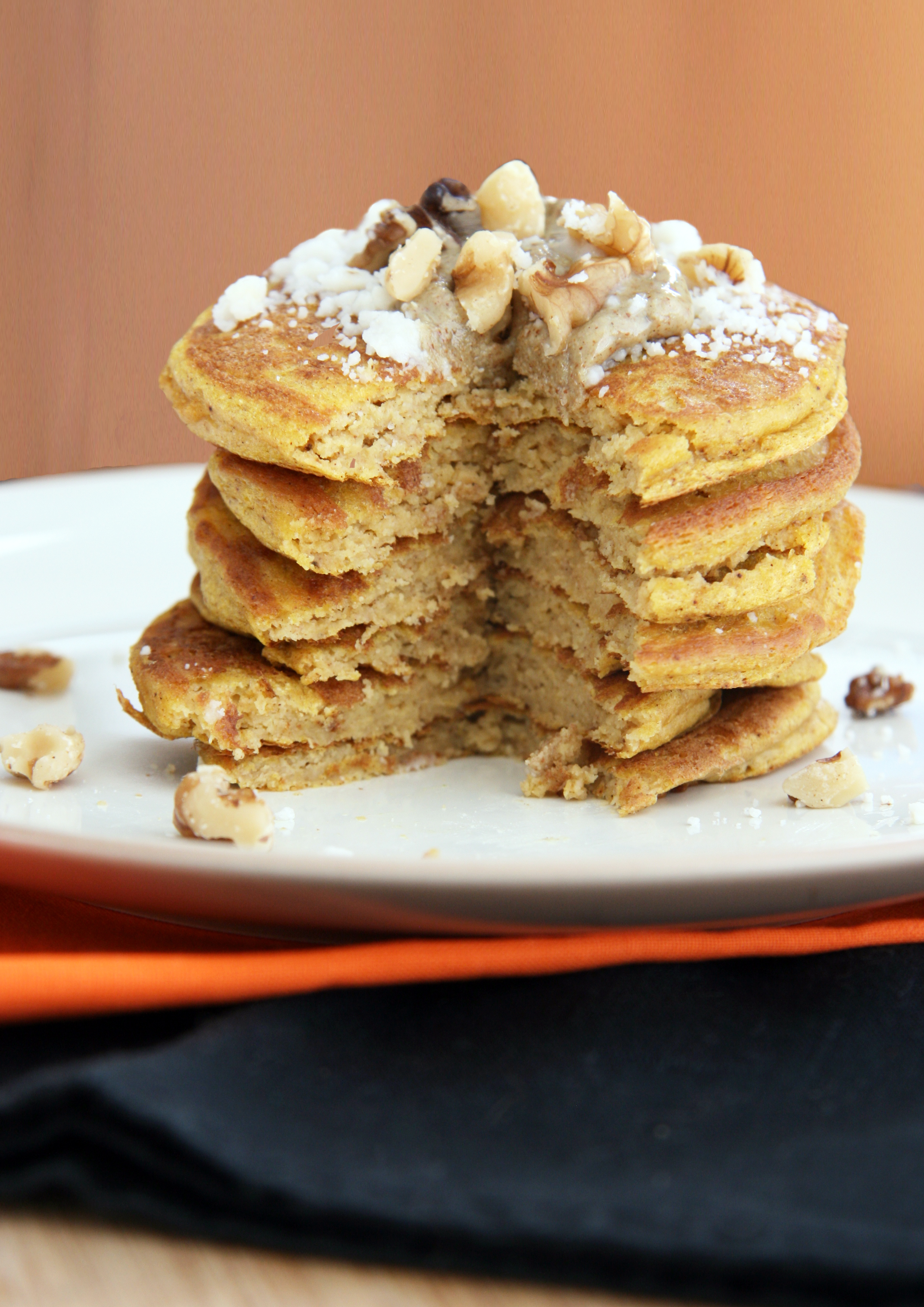 • Beans – add 1/3 cup of beans to a breakfast egg burrito made with a sprouted-grain wrap, or toss with scrambled eggs or tofu and add 5 grams of fiber to your plate. My grain-free pumpkin pancakes use beans, oh yeah 🙂