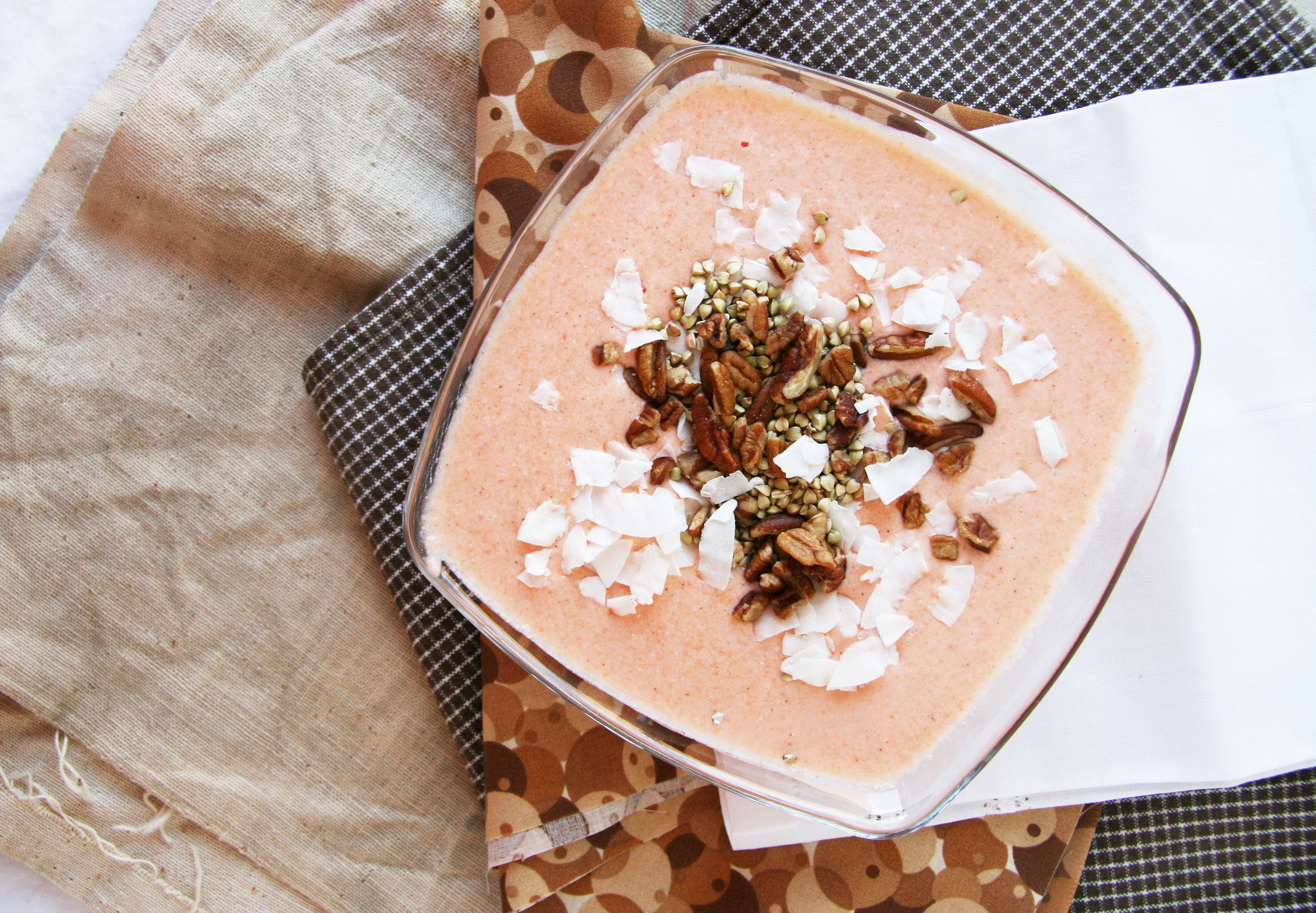 If you aren’t keen on slurping this “dessert soup” from a bowl, sip this from a glass in smoothie form 🙂