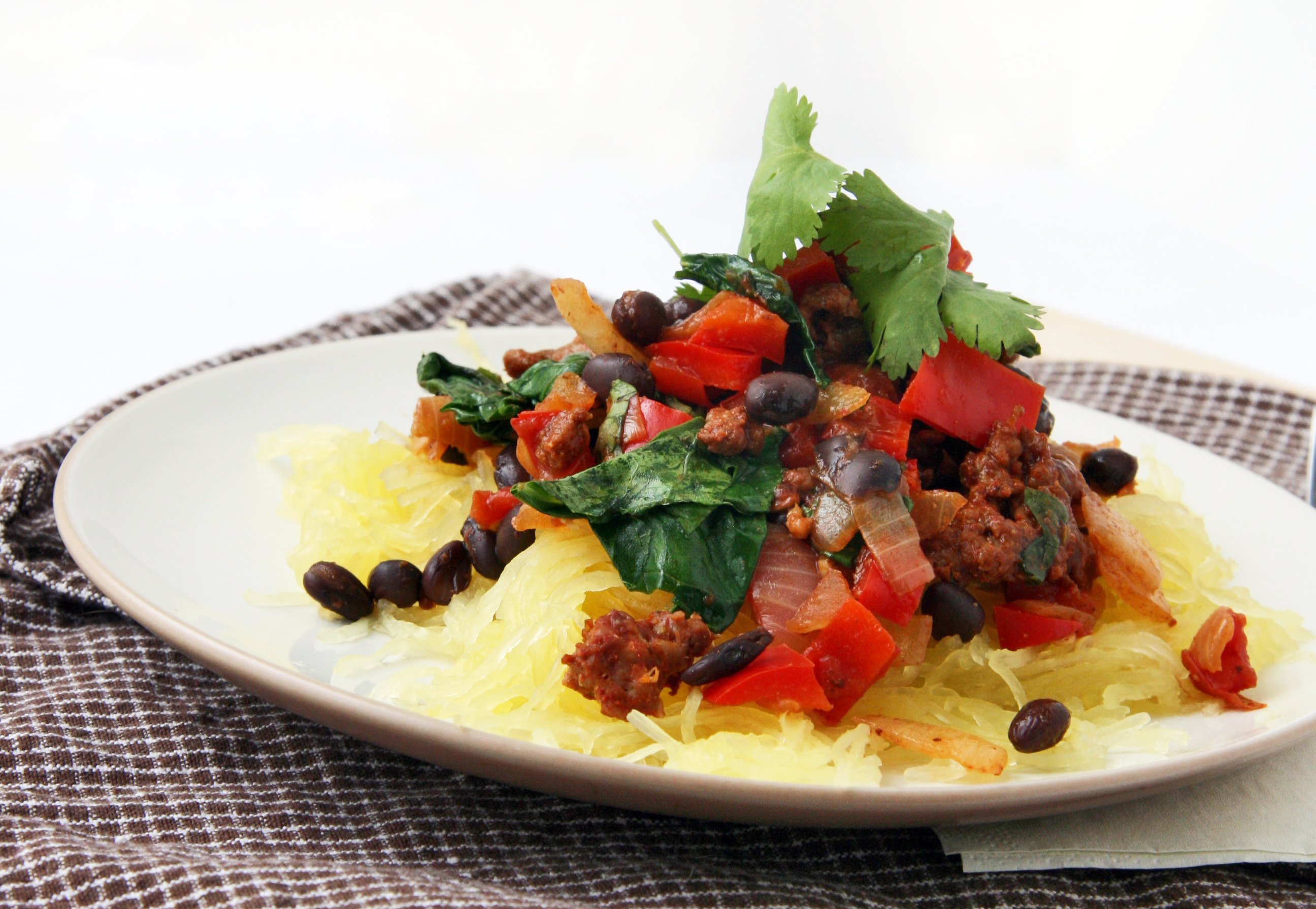 If you don’t have spaghetti squash, serve this ragu over fresh greens for a spin on a warm taco salad or even your favorite cooked grain (like quinoa or brown rice) for a burrito bowl type meal. I had a little bit of the ragu leftover and served it over a baked sweet potato for lunch…YUM. Yep, I’ll be doing that again soon!