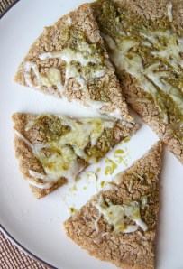 You can also make an easy flatbread and enjoy plain with a dip or spread (below) or slather with basil pesto and mozzarella cheese (far below).