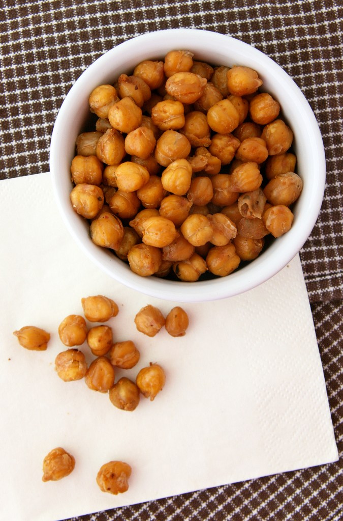 I love to snack on almonds, pecans, peanuts, cashews, sunflower seeds, pepitas etc… I guess you get the picture that I adore a variety of nuts…but what was I to do when I ran out of my favorite snack? I needed to find an easy, baked and crunchy replacement — roasted chickpeas to the rescure!