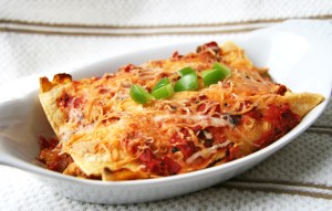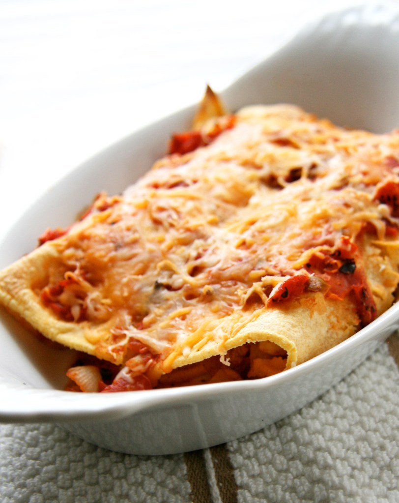 Today was a hectic day. I looked up from my desk after furiously working through the afternoon and it was already 4 pm . Where did the time go? Yikes, I needed to get dinner cookin’ before I headed out for 5:30 boot camp. Enchiladas it was!
