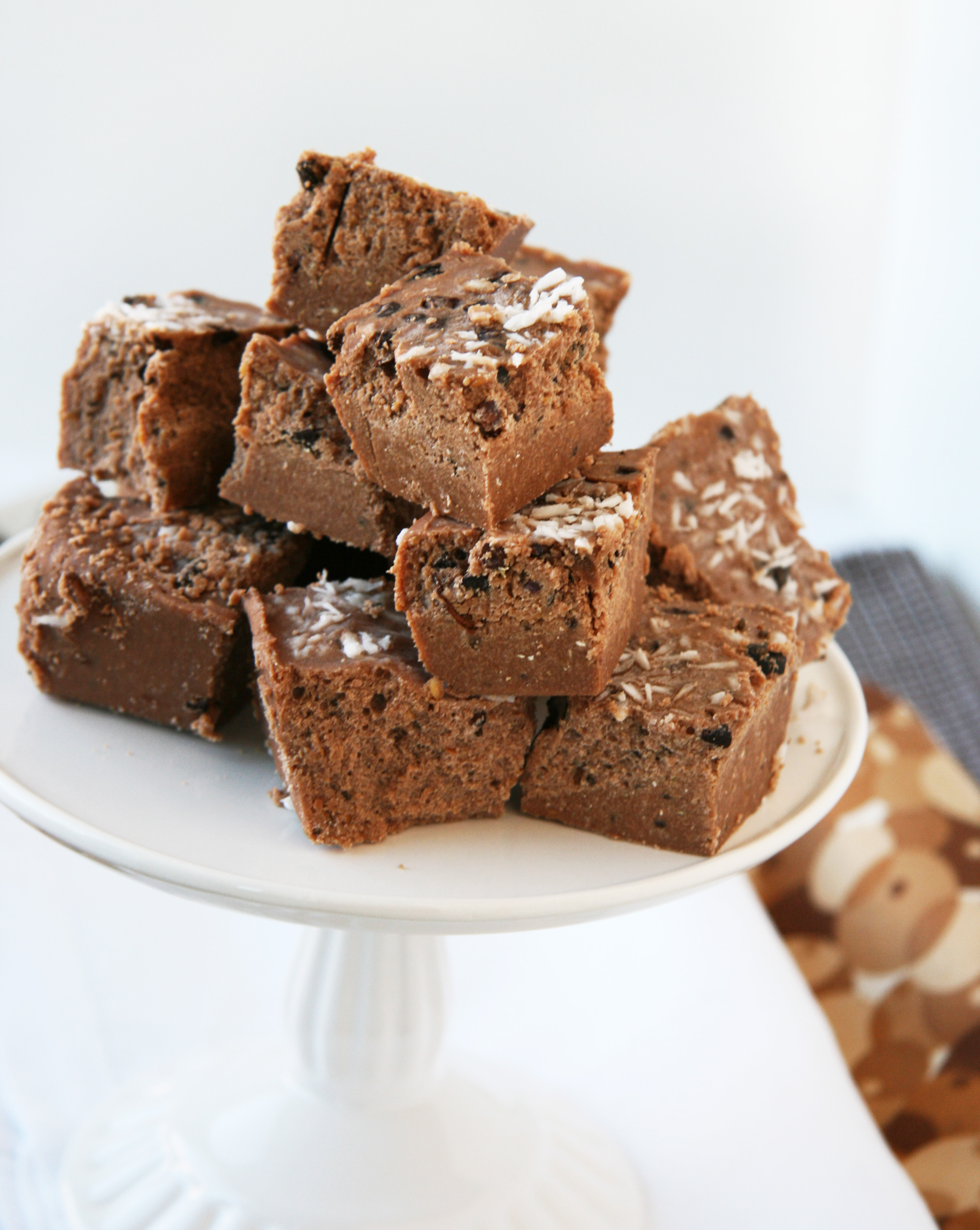 No bake, quick and oh-so-delicious — these dense little blocks satisfy not only my craving for chocolate but any decadent dessert or after-meal treat. They can also stand in as a speedy afternoon pick-me-up when you need a little burst of energy and/or to quench a midday sweet tooth.