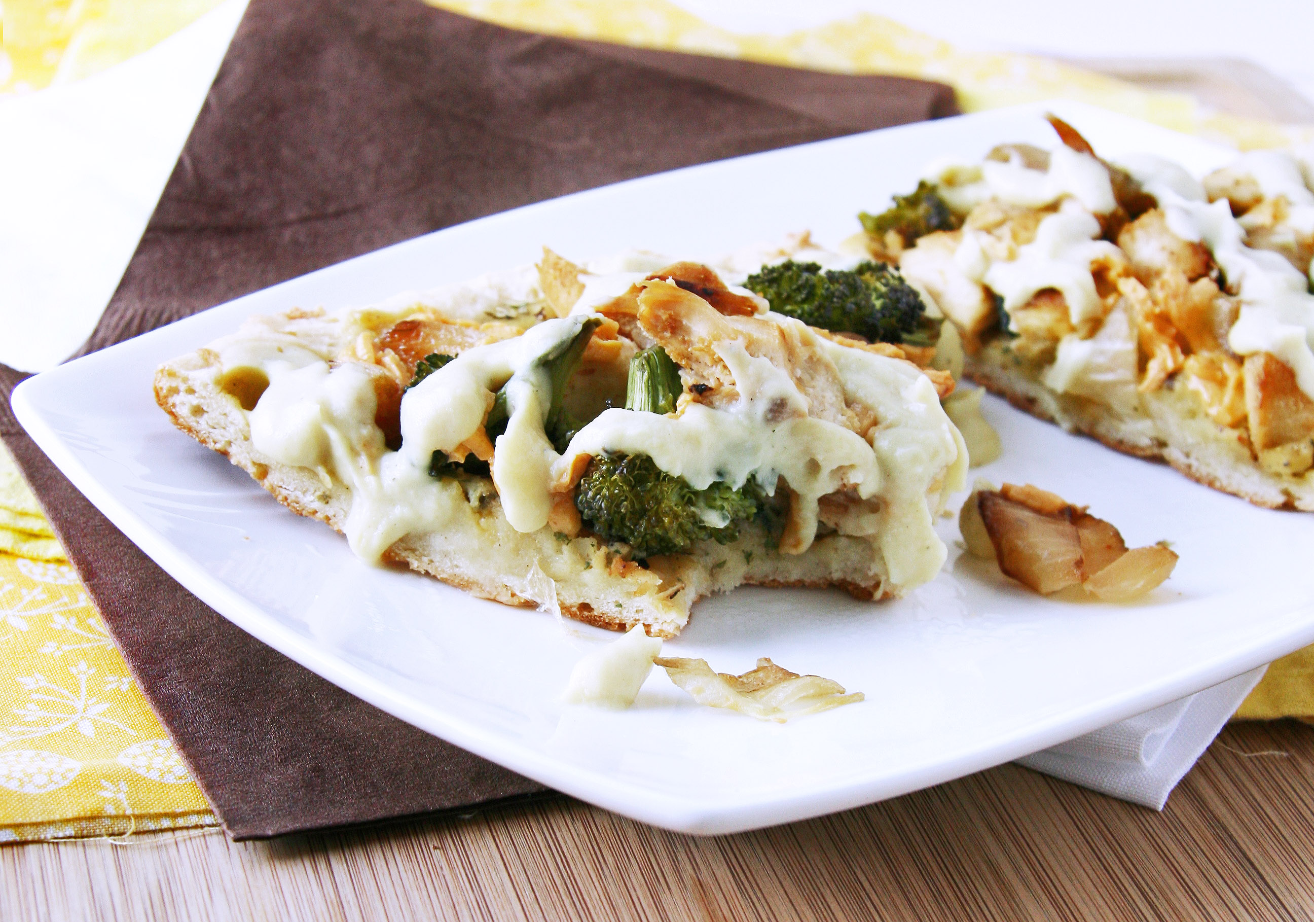 Lightened up Chicken N’ Veggie Alfredo Pizza (Dairy-Free)