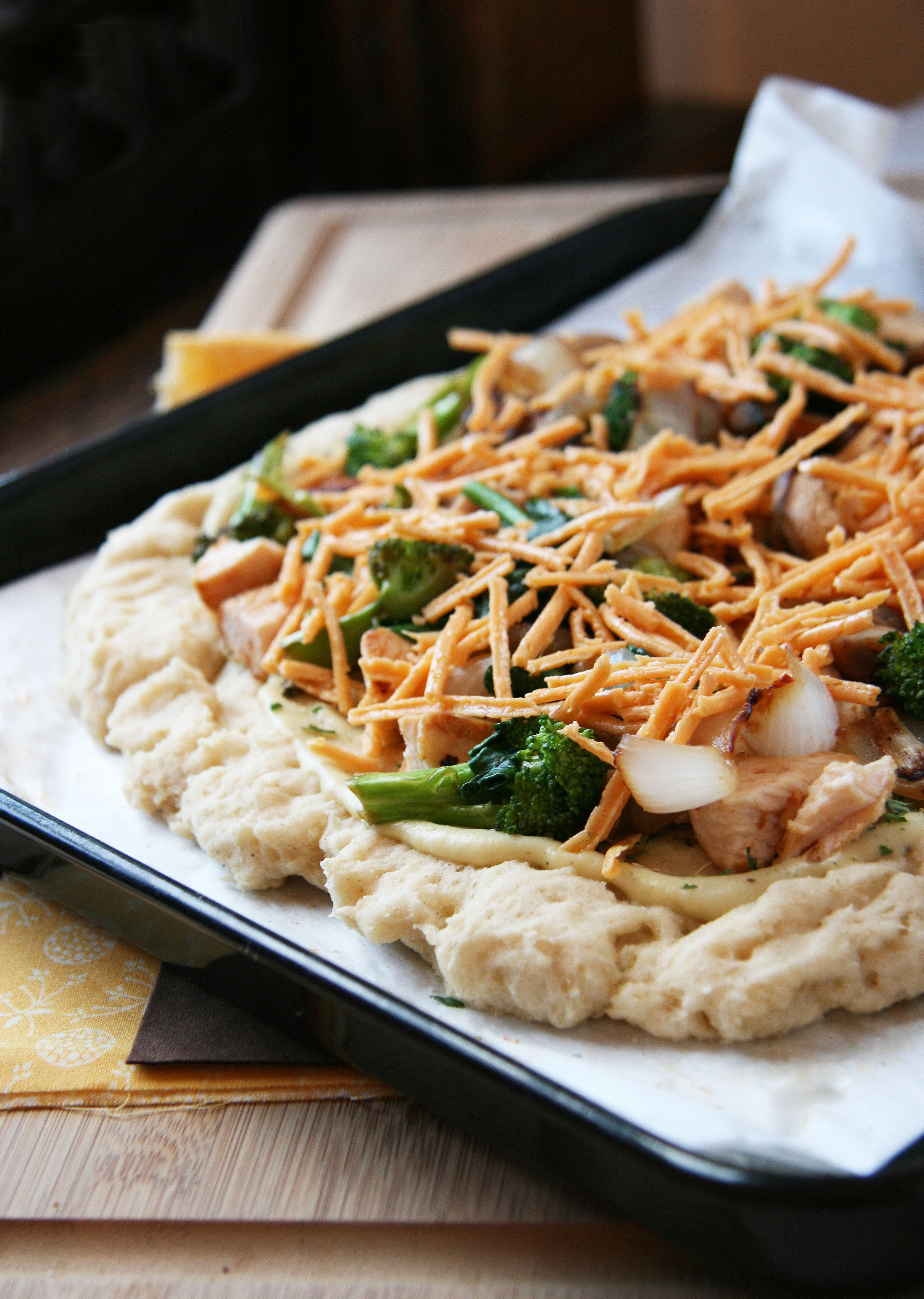 Lightened up Chicken N’ Veggie Alfredo Pizza (Dairy-free)