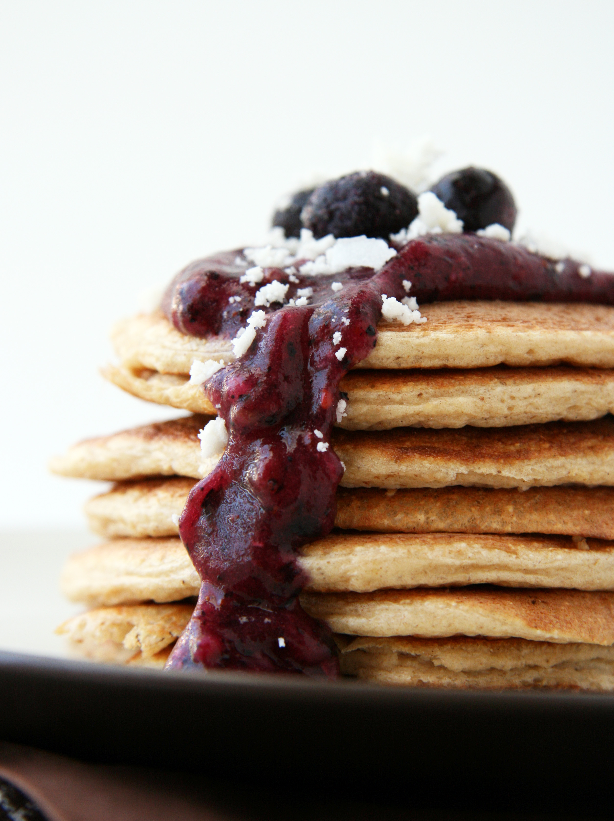 - Garnish with berry chia jam, coconut butter and/or your favorite pancake topping (more butter, maple syrup, honey, applesauce, fruit compote, coconut butter etc) and serve!!!