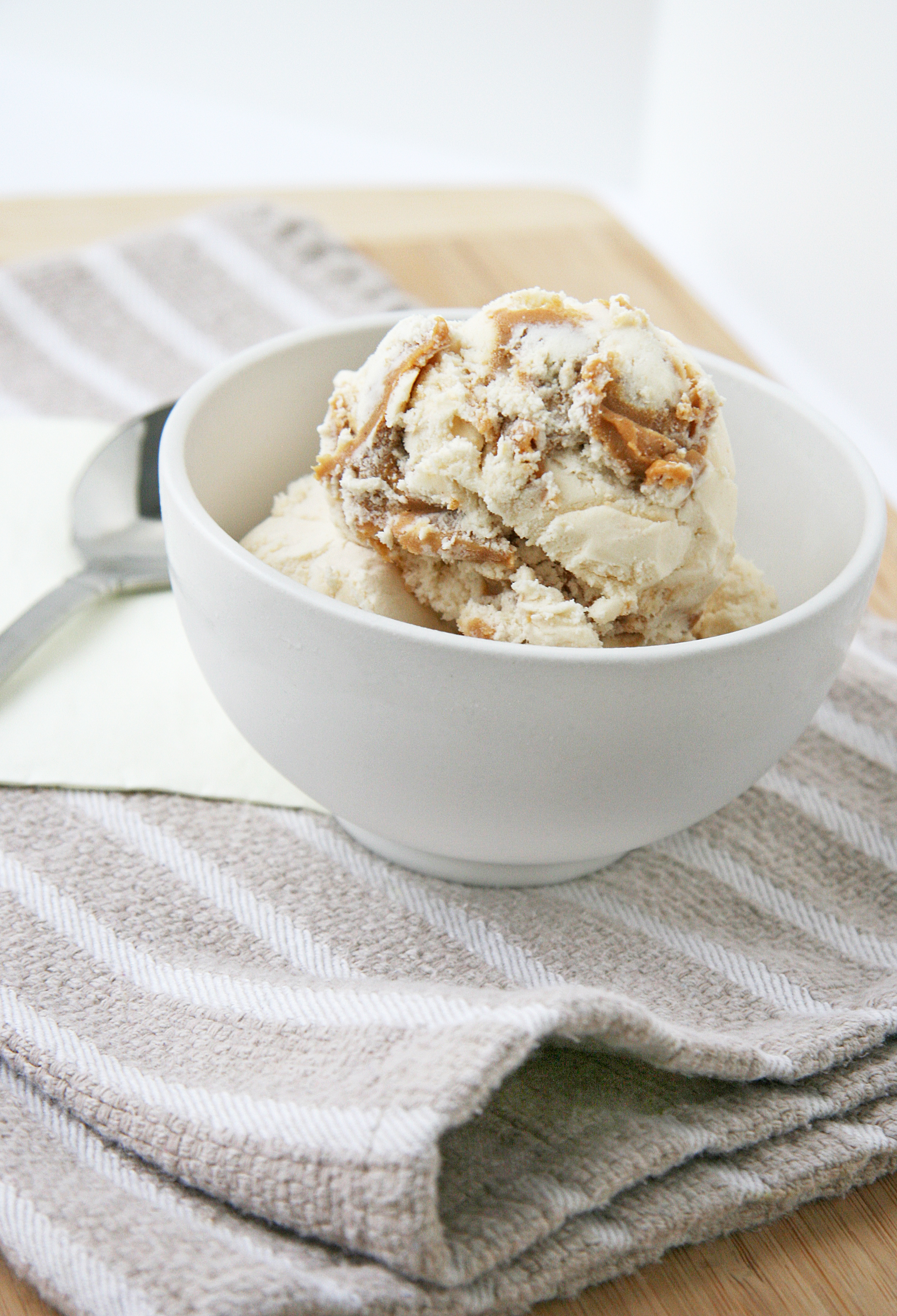 4. Once chilled, add mixture to your ice cream maker and follow manufacturer’s instructions (Mine took about 30 minutes) If you want a peanut butter swirl (optional), add ice cream to a shallow container and drizzle in peanut butter and fold into the ice cream. Either serve immediately (will be more like soft-serve) or freeze for firmer texture, then scoop away and enjoy!