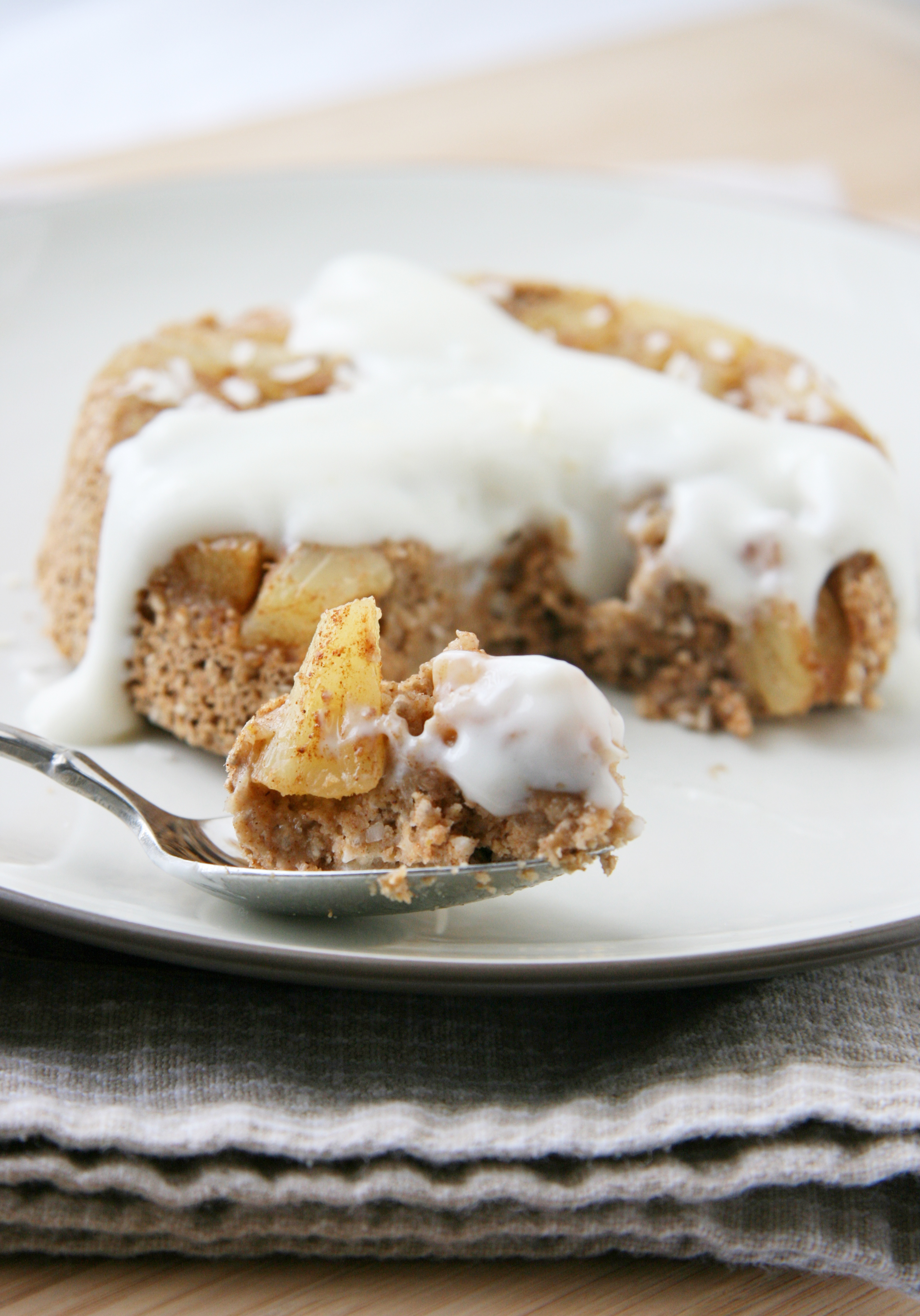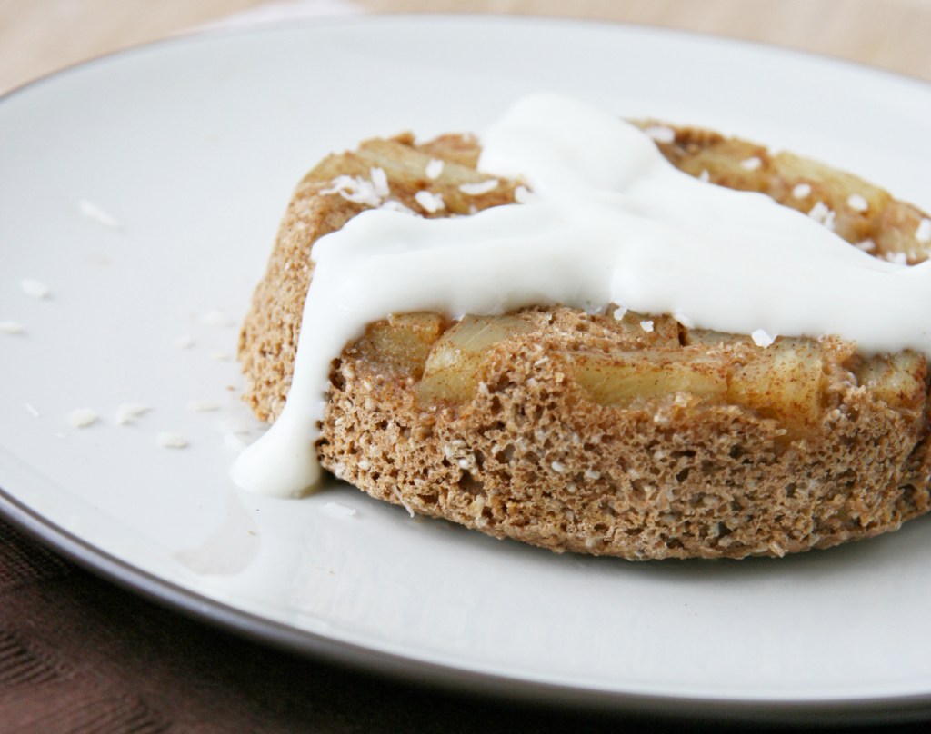 This cake contains no eggs, butter or added oil and qualifies as a healthy dessert…you could even eat this for breakfast without the guilt! The texture is similar to a muffin, more dense than a typical refined flour cake and with the right amount of sweetness that doesn’t go overboard. I know this isn’t traditional BUT if you are in the mood for a little more decadence, top the cake off with the lightly sweetened cream cheese glaze that melts over the warm cake…are you hungry yet?