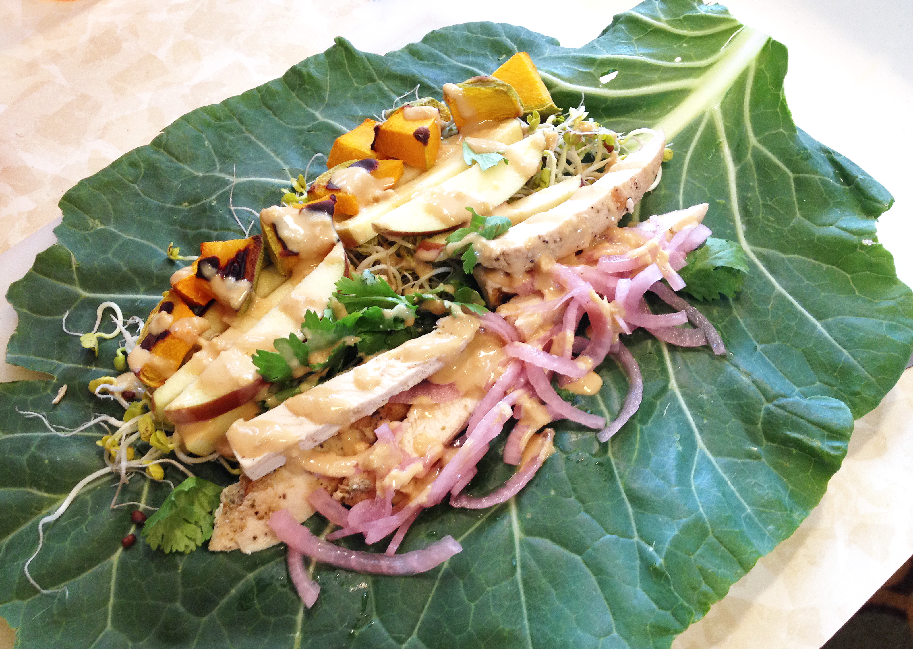 Quick Collard Wrap with Maple Lemon Tahini Dressing