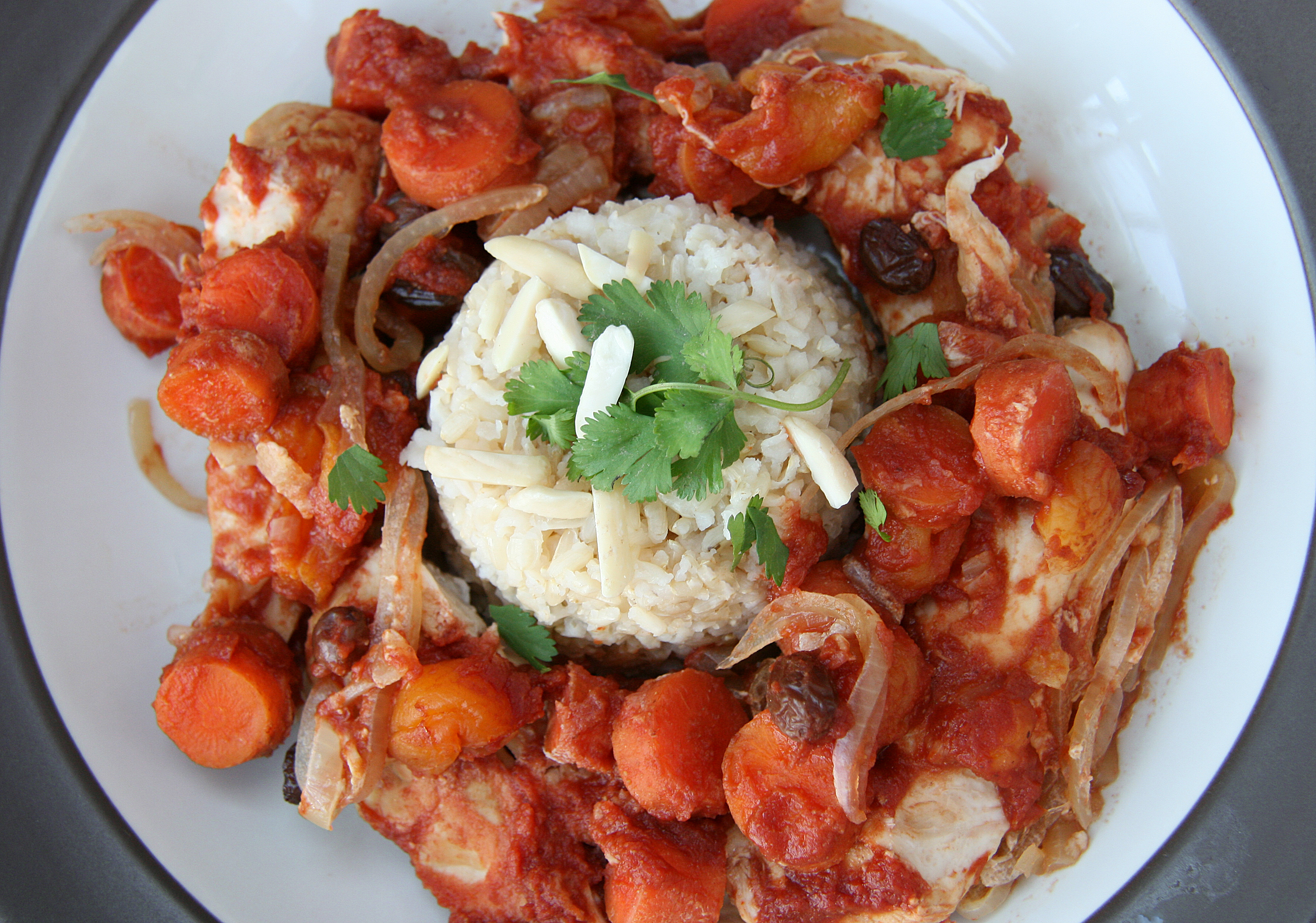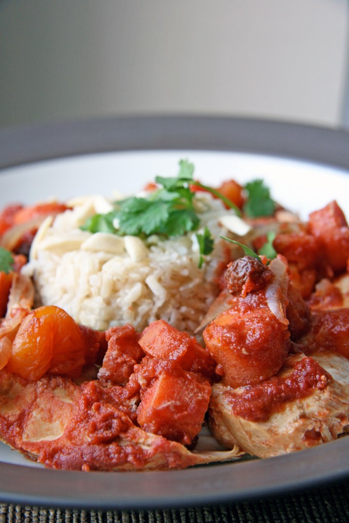 Here’s a crockpot recipe you can throw together before work so dinner will be ready to serve when you get home, not to mention your house will smell divine with a scent of cumin and sweet spices. The only additional item you’ll need to prepare is either rice (could use quick brown rice), fast-cooking GF couscous or quinoa for serving. Or, if you’re like me, you can defrost extra rice you have lying around in the freezer to speed up the process.